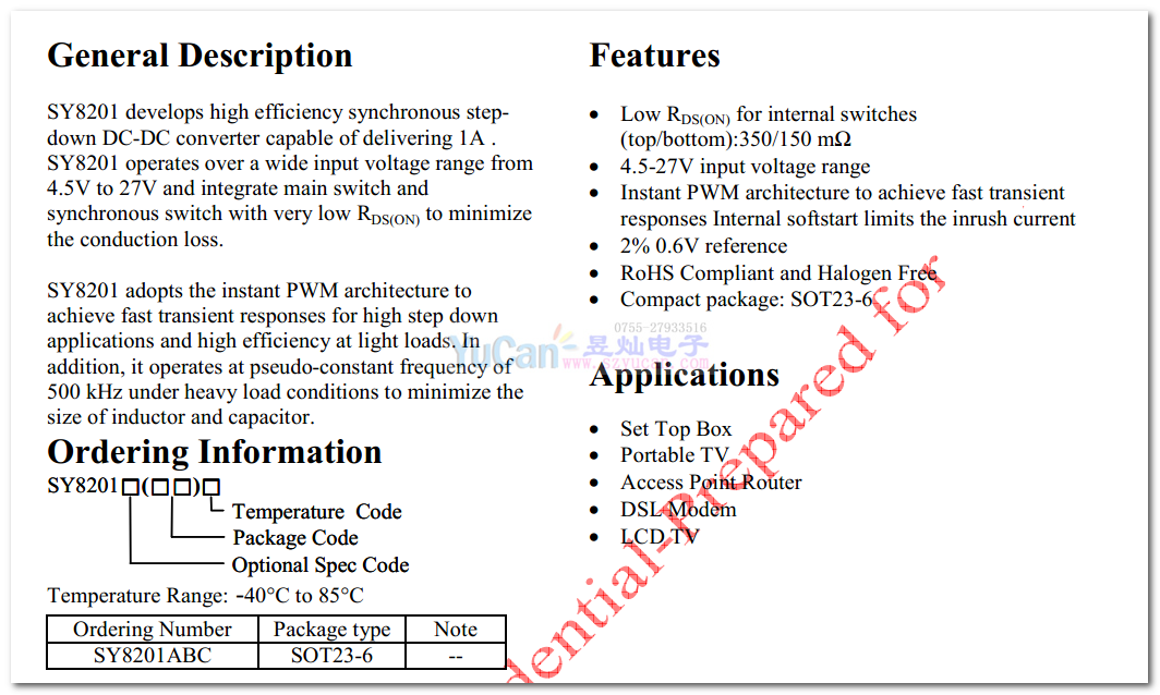 SY8201 4.5-27V工作電壓 1MHZ SOT23-6 1A輸出 高效同步降壓IC